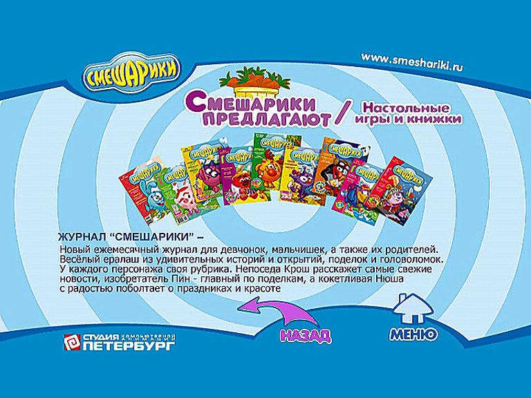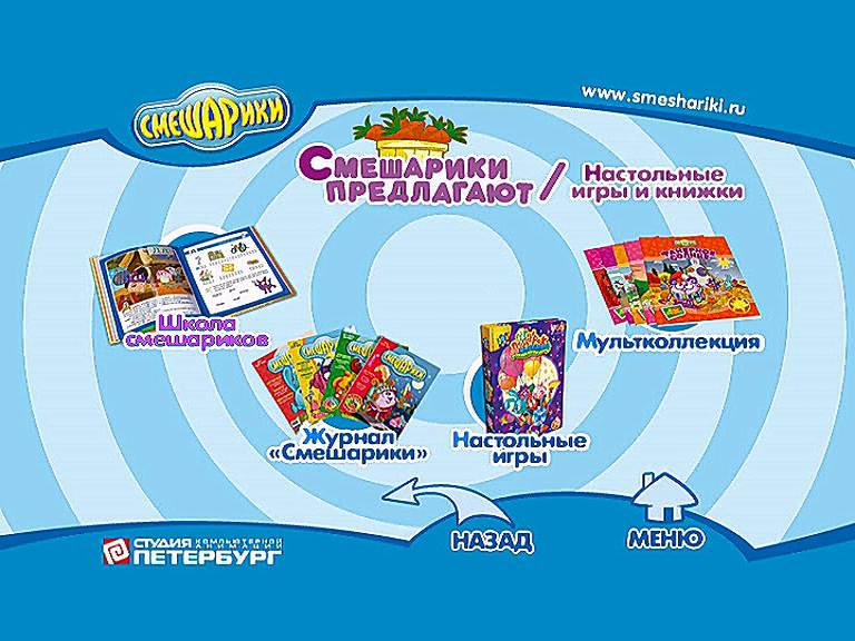 Каталог продукции частично поменял структуру и оформление - все товары представлены в виде моделей или обложек, добавились 4 выпуск, два сборника аудиосказок, игра "Компьютер Ёжика" и раздел с настольными играми и книжками.